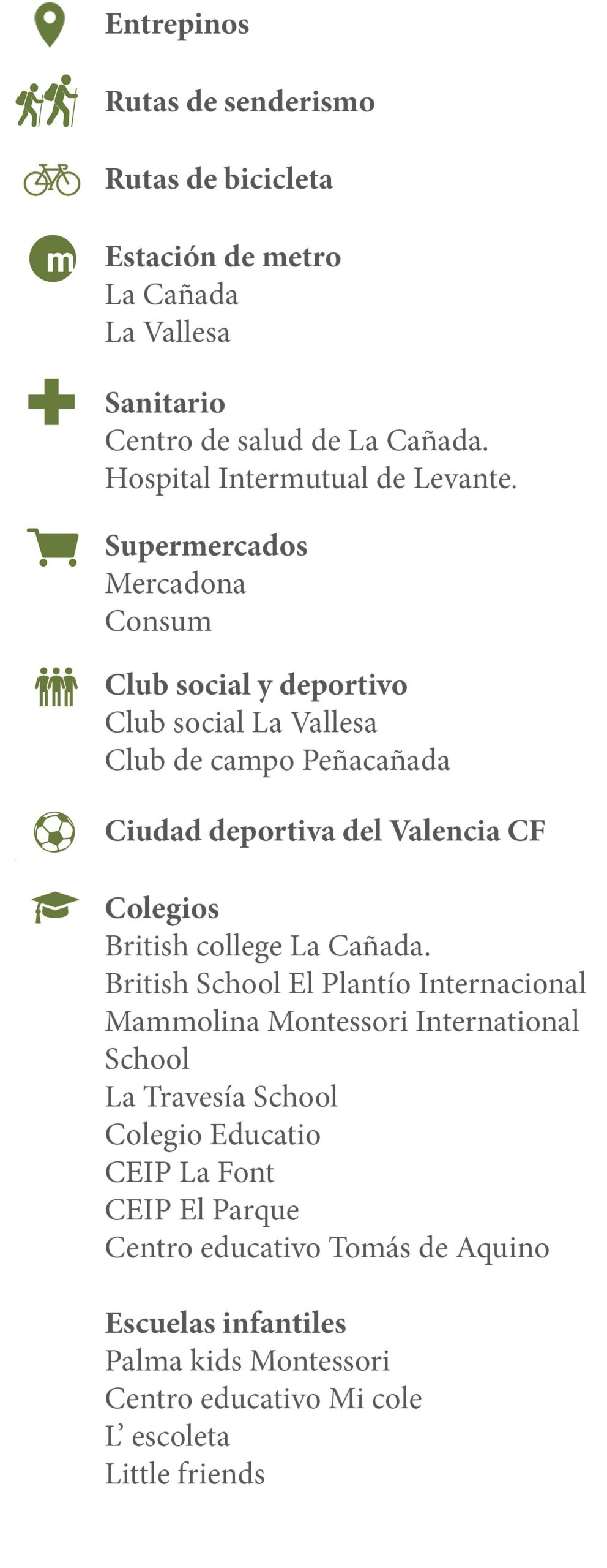 La Vallesa se sitúa en la parte oeste de La Cañada, rodeada del Bosque de La Vallesa, perteneciente al parque natural del Turia. La Cañada cuenta con todo tipo de servicios para ti y tu familia al alcance de tu mano, y por supuesto, sin necesidad de desplazarte a la ciudad.
